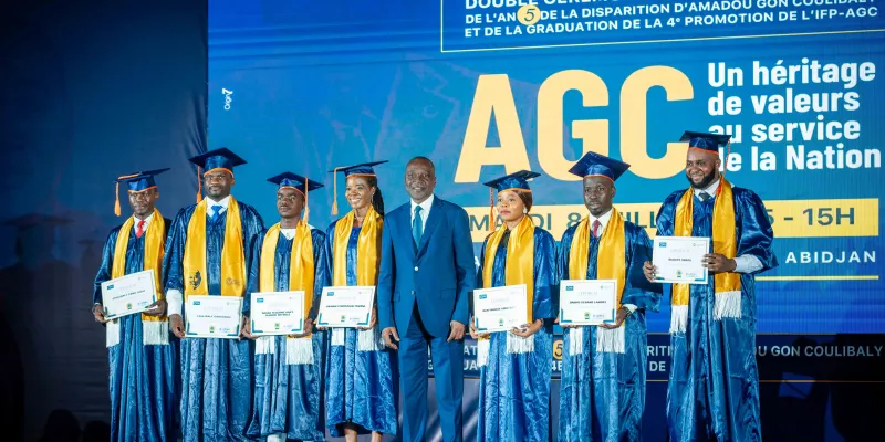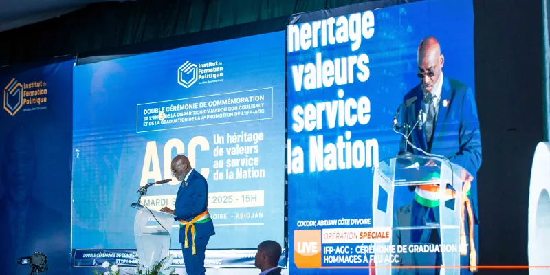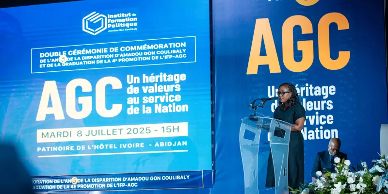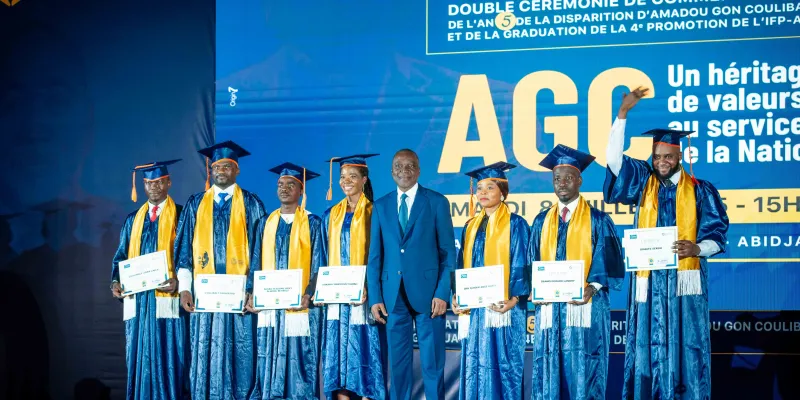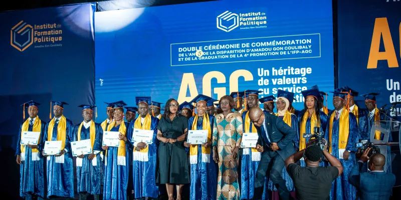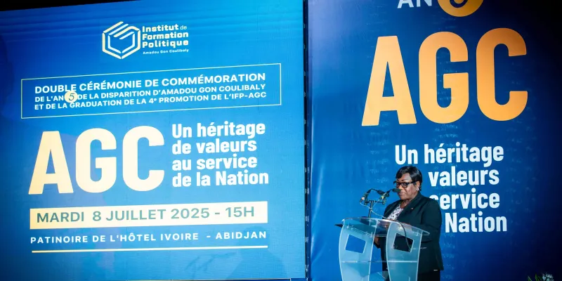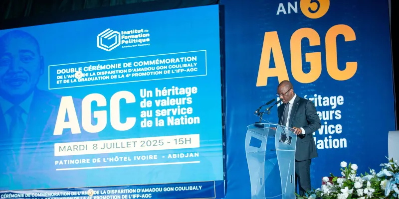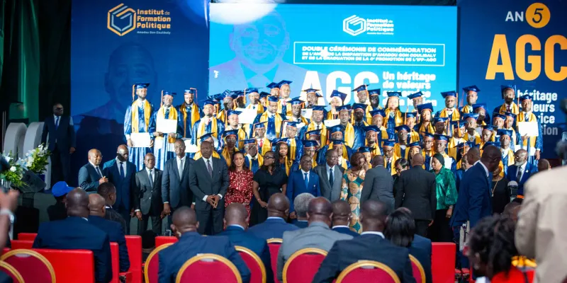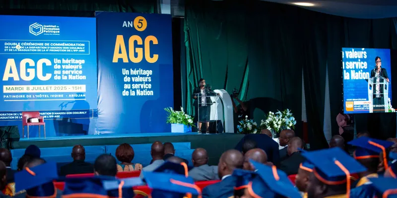 Le mardi 8 juillet 2025, dans l’enceinte solennelle de la patinoire du Sofitel Hôtel Ivoire, s’est tenue la double cérémonie de graduation de la 4ème promotion et de rentrée solennelle de la 5ème promotion de l’Institut de Formation Politique Amadou Gon Coulibaly (IFP-AGC), en hommage à l’homme d’État disparu cinq ans plus tôt, le Premier ministre Amadou Gon Coulibaly.