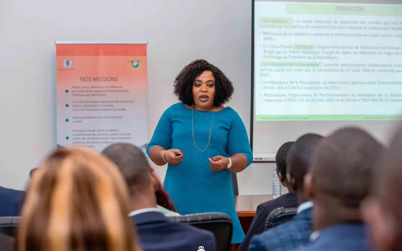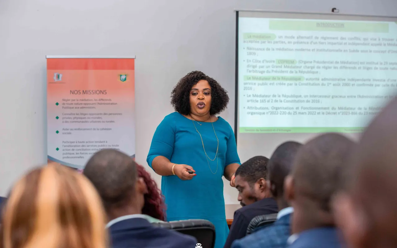 Le jeudi 9 janvier 2025, les auditeurs de la 4e promotion de l’IFP Amadou Gon Coulibaly ont effectué une visite institutionnelle auprès du Médiateur de la République. Accueillis par Mme Doré Marie-Louise, Directrice du Renforcement de la Cohésion Sociale, ils ont découvert le rôle essentiel de cette institution dans la prévention des conflits et la promotion de la paix sociale. Une séance d’échanges interactifs a permis aux participants d’approfondir leur compréhension des mécanismes de saisine et des enjeux liés à la médiation institutionnelle en Côte d’Ivoire. Une étape marquante dans leur formation, axée sur la gouvernance et la cohésion nationale.