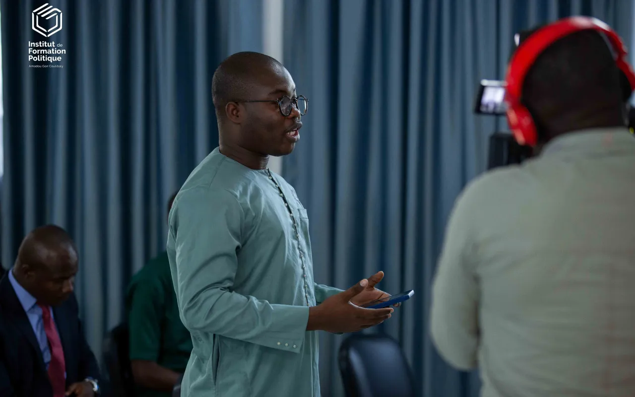 Le samedi [date], les auditeurs de la 4ᵉ promotion de l’Institut Amadou Gon Coulibaly ont participé à une conférence citoyenne sur le rôle des médias et réseaux sociaux dans le maintien d’élections apaisées en Côte d’Ivoire. Animée par M. Ali Diarrassouba (Directeur de l'information, NCI) et Mme Karine Oulaté (experte en digital), la conférence a abordé les enjeux de la désinformation, les dérives liées à l’IA, et la responsabilité individuelle dans l’espace public numérique. Parmi les messages clés : « Avant de publier, il faut prendre du recul. Vérifier, toujours. » – Karine Oulaté « Les grands esprits parlent d’idées, pas des hommes. » – Ali Diarrassouba Un moment fort de réflexion et d’engagement citoyen, en phase avec la mission de l’Institut : former des leaders responsables, promoteurs de paix et de débats éclairés.