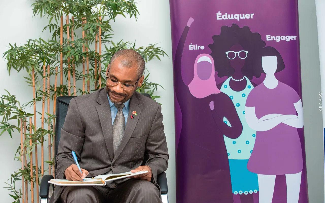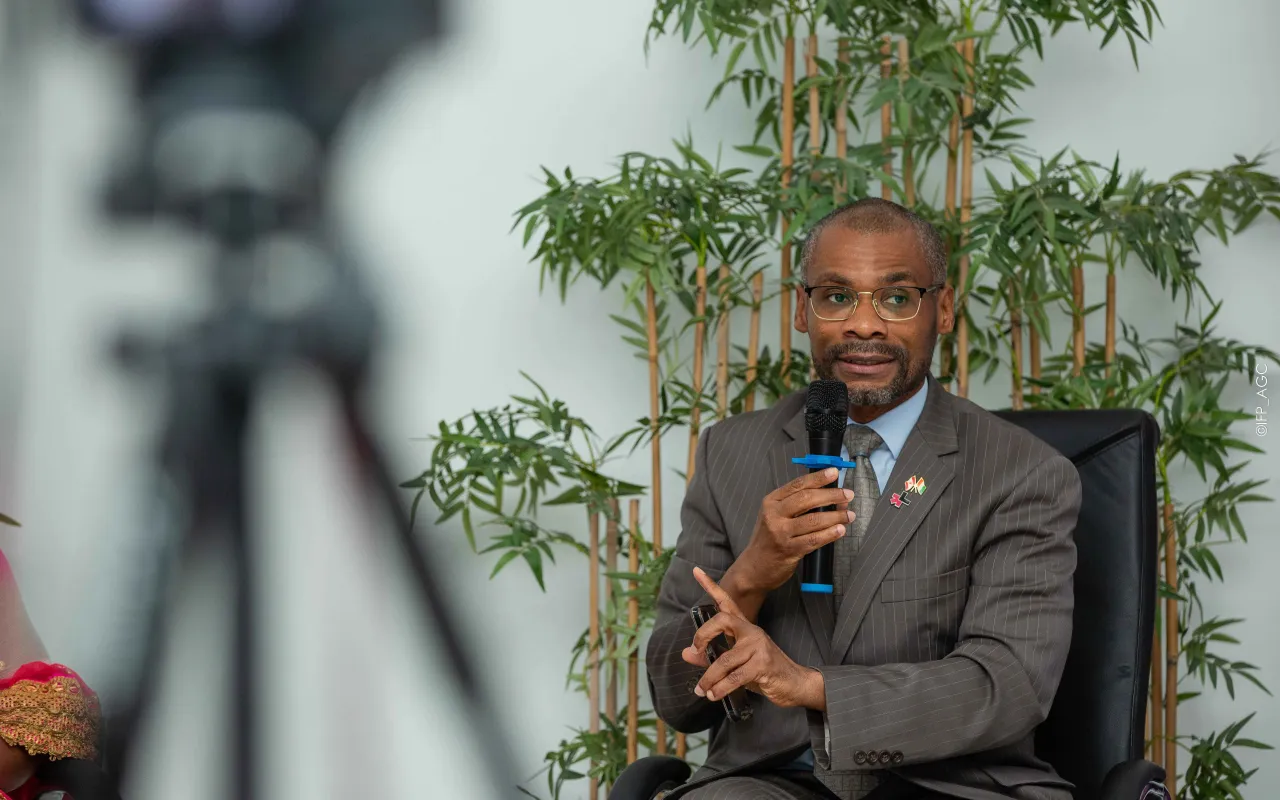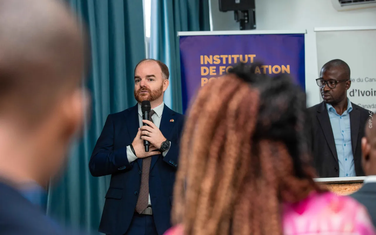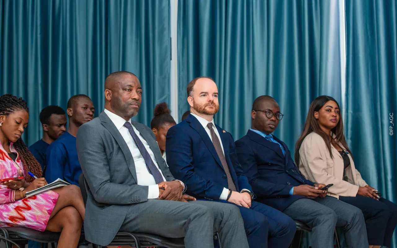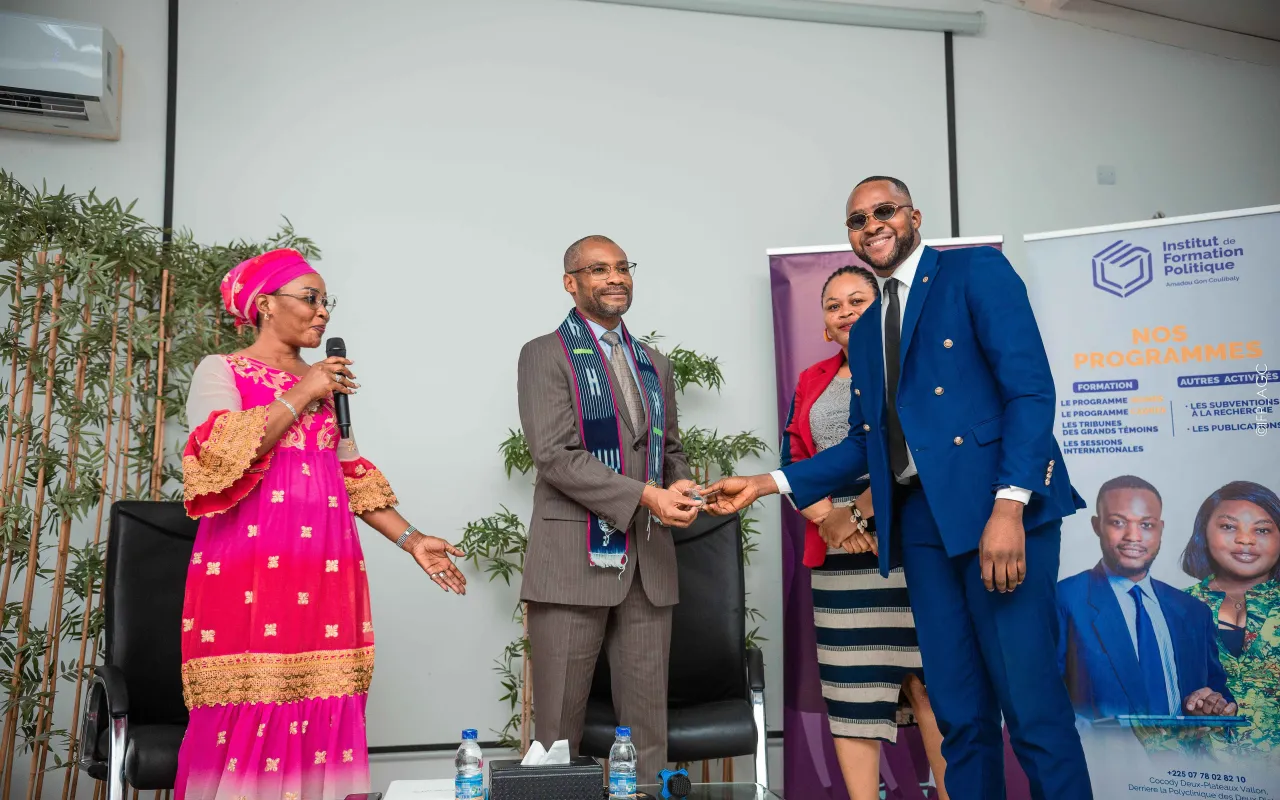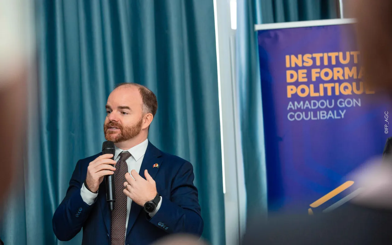 Rencontre avec l’Ambassadeur du Canada à l’IFP-AGC Le vendredi 18 octobre 2024, l’Institut de Formation Politique Amadou Gon Coulibaly a eu l’honneur d’accueillir Son Excellence M. Anderson Blanc, Ambassadeur du Canada, pour un échange inspirant avec les auditeurs de la 4e promotion. Dans une ambiance conviviale, l’Ambassadeur a partagé son parcours personnel et professionnel, tout en abordant des thèmes majeurs tels que la diversité, l’inclusion, l’égalité des genres, et la coopération ivoiro-canadienne. Une phrase forte a marqué les esprits : « L’eldorado n’est pas ailleurs, il est là où on le bâtit. » L’événement, organisé en présence de la direction de l’Institut et modéré par le Directeur de la communication, a été ponctué d’échanges interactifs, de partages d’expériences, et s’est conclu par des remerciements officiels, une signature du livre d’or, et une photo de famille.
