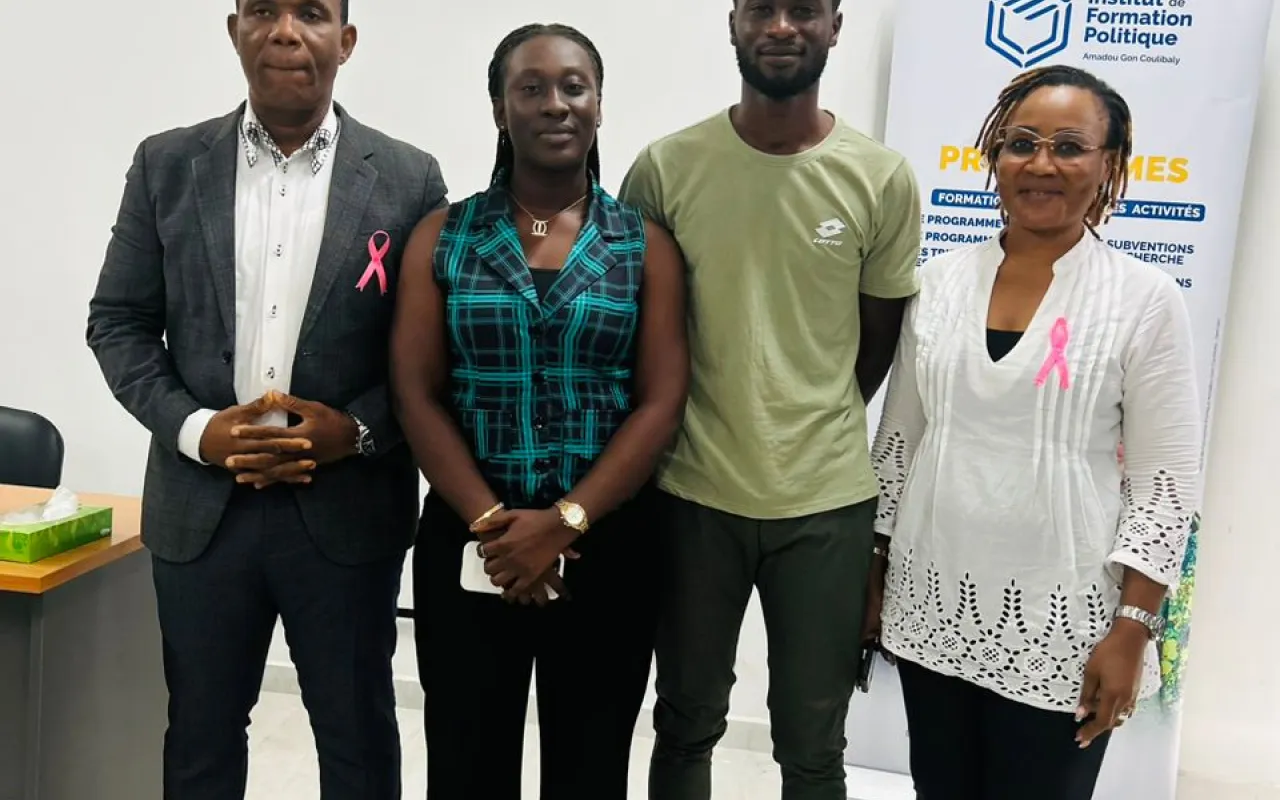 Le samedi 26 octobre 2024, nos auditeurs de l'Institut de Formation Politique Amadou Gon Coulibaly ont activement participé à une séance de sensibilisation sur le cancer du sein et du col de l'utérus, organisée dans le cadre de la campagne Octobre Rose. Première phase : Communication sur la prévention et la détection du cancer du sein et du col de l'utérus. Nos intervenants ont abordé les thèmes clés autour de ces cancers, avec des informations essentielles pour mieux comprendre les méthodes de détection précoce et de prévention. Deuxième phase : Dépistage pratique du cancer du sein, permettant à chacun de se sensibiliser aux gestes de prévention indispensables. Cette journée a été l'occasion de rappeler l'importance de la prévention et de la solidarité dans la lutte contre le cancer. Merci à nos auditeurs pour leur engagement et à tous ceux qui œuvrent pour la santé de la femme en Côte d'Ivoire ! Ensemble, agissons pour la vie.